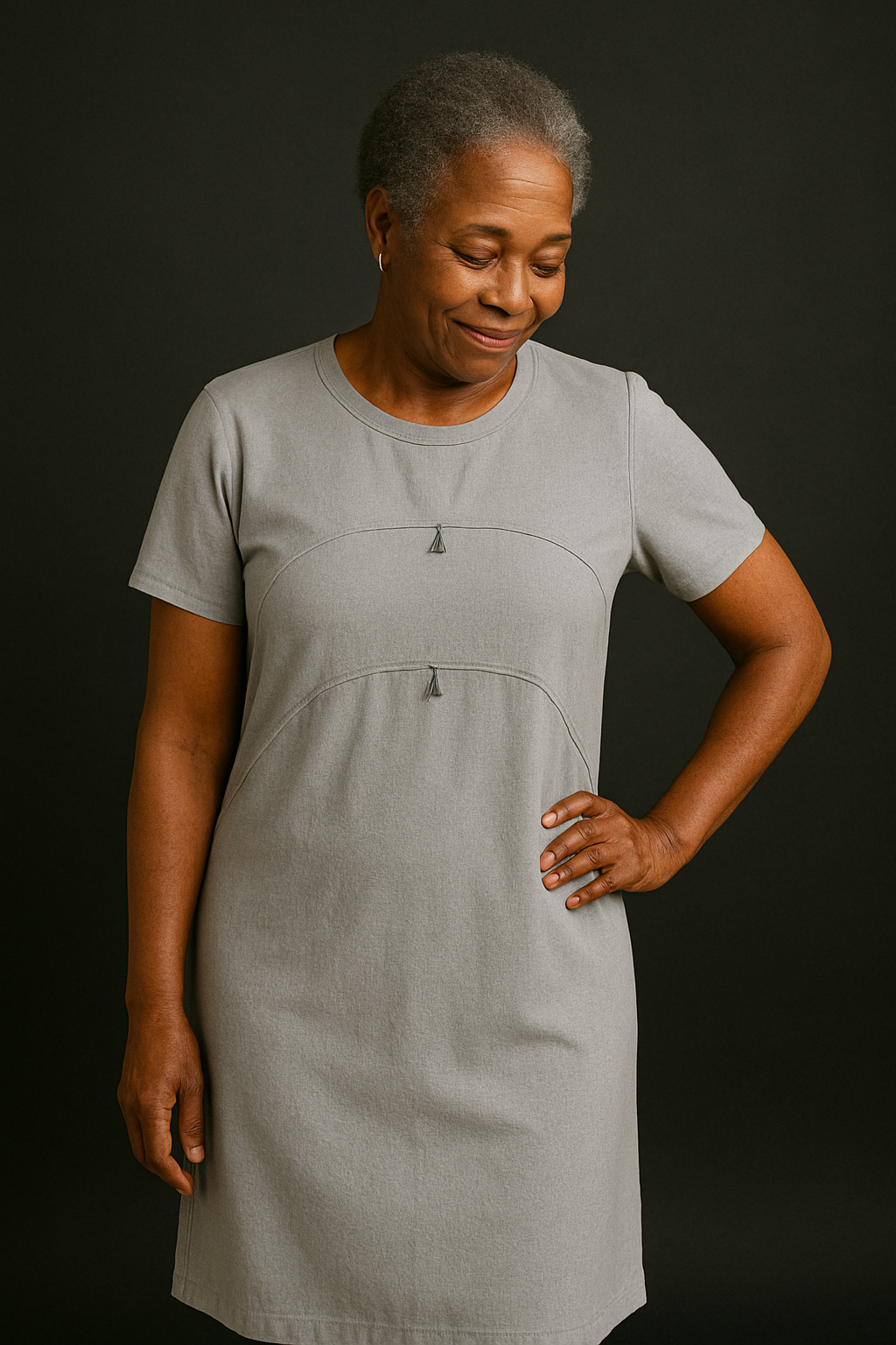 - Proprietary underarm slits for patient comfort and provider examination efficiency.